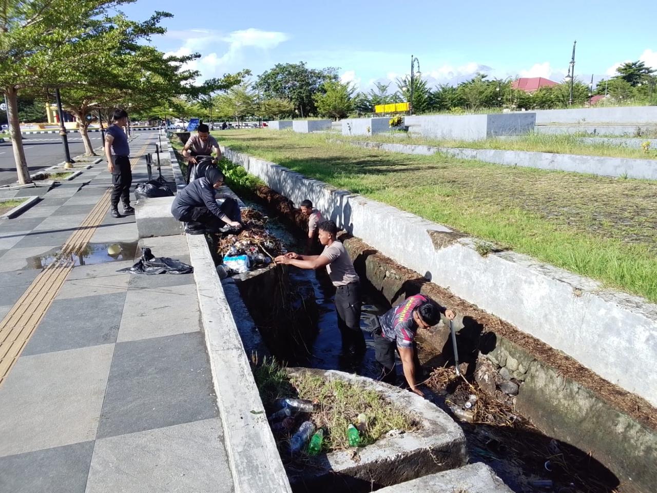 Dalam suasana penuh kebersamaan, personel Ditsamapta Polda Malut turun langsung menyisir area publik guna memastikan lingkungan Alun-Alun Sofifi bersih, sehat, dan nyaman bagi warga.